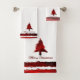 Christmas Tree Modern Holiday Pattern Red Bath Towel Set