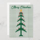 Design features a Christmas tree made from airplanes, red ball ornaments, topped with a gold star in a green plaid background. The back has Christmas wishes, perfect for a pilot or aviation enthusiast family . Personalize the back with a different message and family photo. Perfect for the holidays!