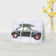 Christmas tree on car with dog in snowy window card