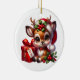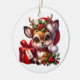 This Christmas tree ceramic ornament is shown in a round shape with a festive holiday Christmas deer print.