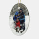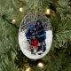 Christmas photo ornament. Hang a picture on the xmas tree using this oval ceramic decoration. Add custom text to the back with year and other personal information. Upload your favourite photo to replace the example one shown using the template provided and create a beautiful, family keepsake. ..................
