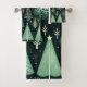 Sage and Olive Green modern lit Christmas tree pattern towels