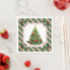 Beautiful Christmas paper napkins featuring a colorful Christmas tree with a Christmas plaid border and holly accents.