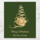 Christmas Tree Present- green background, gold ribbon christmas tree with gold present