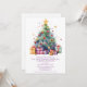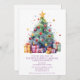 Purple Christmas trees and presents party invitation for a festive Holiday party.