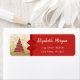 Adorable christmas tree and red bow on shiny gold glittery background. An elegant and sophisticated designe.Costumize with your name and address details.