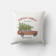 Christmas Tree Red Family Wagon Car Throw Pillow