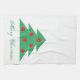 Christmas Tree Red Green Merry Christmas kitchen towel. Festive design with Christmas trees with red balls and snowflakes on the green. The colours are holiday red and green. You can change the text.