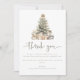Christmas Tree Sage Script Thank You. Available digitally and printed. Contemporary style to invite your guests to your holiday celebration and send your festive greeting too. Thank you is in an elegant set script in sage and the rest of the text you can easily personalise. You can choose any colours for text and background via the customise further option.