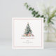 Festive watercolor Christmas tree with gifts, holiday card.