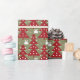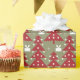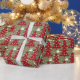 Wrap your holiday gifts with this seasonal wrapping paper featuring and red Christmas tree, Christmas gift boxes and snow on a green background. Your presents will look extra jolly under the tree.