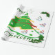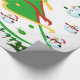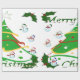 This design features a green christmas tree with red, gold and white ribbon and Christmas balls decorating the tree. Snowmen and holly decorate this design. "Merry Christmas" is printed on this design in green and white. This wrapping paper is available in assorted styles and coloured backrounds and borders.