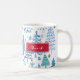 This cheerful holiday coffee mug features a pattern of whimsical Christmas trees in teal blue and green with your name to personalize on red. Illustrated by world renowned artist Tim Coffey. Makes a unique gift.
