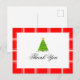 A festive Christmas Thank You postcard accented with a Christmas tree.