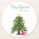 Christmas tree with Red present Round Paper Coaster
