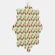 This Christmas and New Year-themed design features intricately detailed colourful - green, red, and white pines in different styles and forms with lighting toppers in the form of stars set against a light beige background, creating a stunning visual effect and embodying the cozy winter vibes.