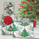 Winter woodland wrapping paper sheets with a Christmas tree as the focus. A red star tops off the Christmas tree and each sheet comes with a different treatment of the tree decorations. The first can be of your personal photo, the second tree has a customizable red monogram, and the third is typography of "Happy Holidays" and a place to add your family name.