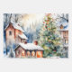 Christmas tree Xmas village snowing pic Wrapping Paper Sheet