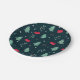 Christmas Trees and Holly Modern Pattern Dark Blue Paper Plate