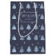 This gift bag features a subtle pattern of stylized Christmas trees and snowflakes in shades of sky blue and slate on a navy blue background. Optional 'Happy Holidays' text and a label have been provided to add your name and/or other text. Search ID861 thru ID864 to see additional colour options and other products in this modern, Christmas design set.