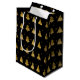 This gift bag features a subtle pattern of stylized Christmas trees and snowflakes with a textured-effect in shades of gold on a black background. Optional 'Happy Holidays' text and a label have been provided to add your name and/or other text. Search ID861 thru ID864 to see additional colour options and other products in this modern, Christmas design set.