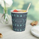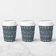 This paper cup features a pattern of stylized Christmas trees and snowflakes in shades of watchet blue on a dark teal blue background. Optional 'Happy Holidays' text and a label have been provided to add your name and/or other text. Search ID861 thru ID864 to see additional colour options and other products in this modern, Christmas design set.