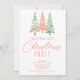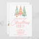 Red font and green Christmas trees party invitation for a festive Holiday party.