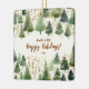 Christmas pine trees in a rustic forest is from a vintage watercolor pattern. It has lovely green and golden brown tones and details. If you want, you can change the mahogany brown script "Happy Holidays" phrase to another sentiment. Please be sure to change the example names and date to those that you want.