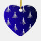 Christmas Trees Silver on Cobalt Blue Ceramic Ornament