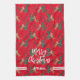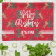 This colourful cartoon-style Christmas tree pattern has a customizable red background.
