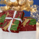 This colourful cartoon-style Christmas tree pattern with a customizable dark red background.