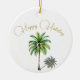 Christmas Tropical Palm Tree Gold Merry Ceramic Ornament