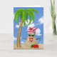 Christmas sand snowman with holiday lights and tropical palm tree in sand
