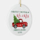 Modern Calligraphy Script Our First Christmas as Mr. and Mrs. - Watercolor Vintage Red Truck Ornament - Forest Green Text with Red Script