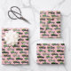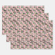 Christmas Trucks Xmas Trees Wreaths Grayscale Pink Wrapping Paper Sheet