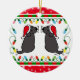 Two Black Labradors Christmas Ornament. Whimsy and cute Labrador Retriever Cartoon created by Naomi Ochiai from Japan. Great fun gifts for dog lovers who love Black Labradors. :) Adorable Black Labradors are looking back with Santa Hats and Mustaches!