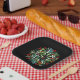 The word CHRISTMAS sits among winter leaves and berries on a black background (or any colour), these square paper plates are elegant for any holiday Christmas occasion. MATCHING items in our store.