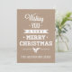 Elegant Christmas typography beige kraft paper cardboard rustic Holiday Card in vintage style. An elegant holiday design with a vintage flair and the the text “Wishing you a very merry Christmas” in white and holly berry.
