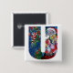CHRISTMAS U LETTER / SANTA WITH VIOLIN MONOGRAM 2 INCH SQUARE BUTTON