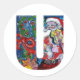 CHRISTMAS U LETTER / SANTA WITH VIOLIN MONOGRAM CLASSIC ROUND STICKER