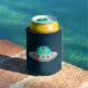 This awesome patterned Christmas can cooler features a digital art image of an alien spacecraft decorated with bright coloured Christmas lights. Inside the UFO looking out through the window there is a green alien with black eyes wearing a festive Santa hat. Holiday greetings from outer space for all Earthlings.