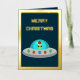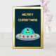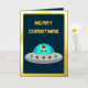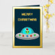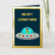 Christmas UFO Ho Ho Alien flying saucer Custom Foil Greeting Card