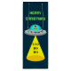 This awesome Christmas wine gift bag features a digital art image of an alien spacecraft decorated with bright coloured Christmas lights. Inside the UFO looking out through the window there is a green alien with black eyes wearing a festive Santa hat. There is a cone of light coming from the flying saucer. The shadow of a message is being projected to Earth. The message says Ho Ho UFO. Holiday greetings from outer space for all Earthlings. There is custom text so you can personalize this design with your own message.