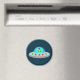 This awesome Christmas magnet features a digital art image of an alien spacecraft decorated with bright coloured Christmas lights. Inside the UFO looking out through the window there is a green alien with black eyes wearing a festive Santa hat. Holiday greetings from outer space for all Earthlings.