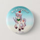 This joyful Christmas button featuring an adorable unicorn with red Xmas hat, and a green neck scarf with a golden bell can be customized with any message you like for someone dear.