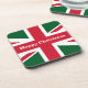A festive Union Jack in red green and white for Christmas on a 6 coaster set that reads Happy Christmas