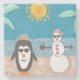Snowman and penguin vacationing on the beach. What could be more fun?