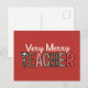 Christmas Very Merry Teacher Leopard Tree Holiday Postcard