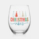 Christmas Vibes - Colourful Holiday Trees Design Stemless Wine Glass