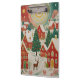 Nestled amongst snow-dusted evergreens, this festive village shimmers with holiday cheer. Did you know that the tradition of decorating Christmas trees dates back to 16th-century Germany? Here, charming red houses with snow-capped roofs peek out from the wintry landscape, while a gentle deer adds a touch of woodland magic. This design evokes the cozy warmth and timeless spirit of Christmas, perfect for capturing the season's enchantment.